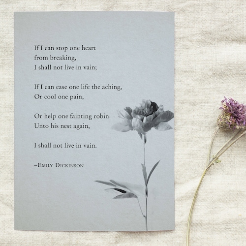Emily Dickinson Quote If I Can Stop One Heart From Breaking I Etsy